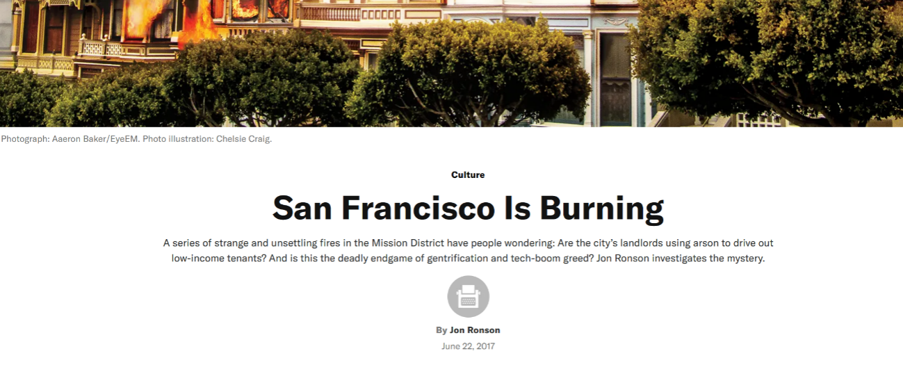 比如前些年旧金山发生了一系列神秘火灾,虽然人们都怀疑是房东纵火,但警方没有能力或意愿去查证。