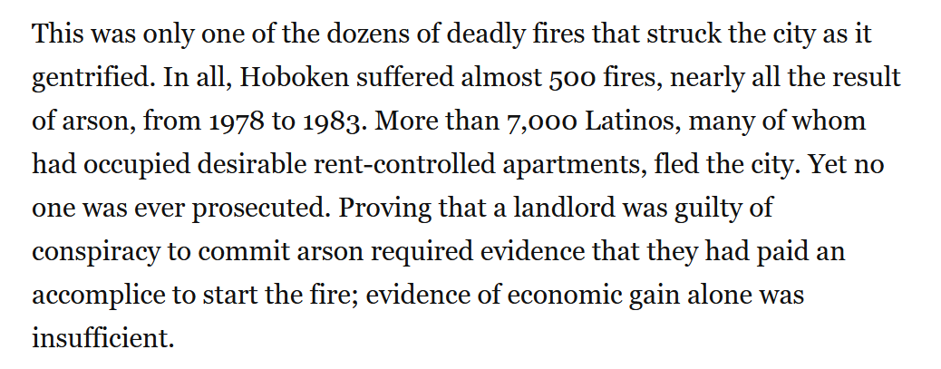 因为随着中产阶级和大公司的涌入,地主们非常希望将自己的廉价住房重建为豪华公寓,把原有的租客赶走迎来有钱的白领们。而放一把火,既可以清除掉原有的租客和建筑,为“士绅化”做准备,甚至还可以领到保险赔偿。
